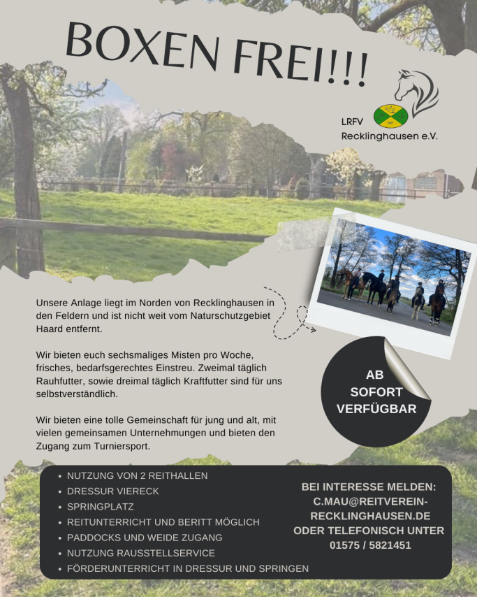 Unsere Sponsoren, ohne die unser Verein nicht da wäre, spielen eine entscheidende Rolle in der Förderung und Entwicklung unseres Reitvereins. Sie unterstützen uns nicht nur finanziell, sondern tragen auch aktiv zur Verwirklichung unserer Ziele bei. Dank ihrer großzügigen Beiträge können wir Veranstaltungen organisieren, Trainingsmöglichkeiten verbessern und die Infrastruktur unseres Vereins weiter ausbauen. Wir danken unseren Sponsoren herzlich für ihr Vertrauen und ihre Unterstützung, die es uns ermöglichen, die Leidenschaft für den Pferdesport zu leben und zu teilen.